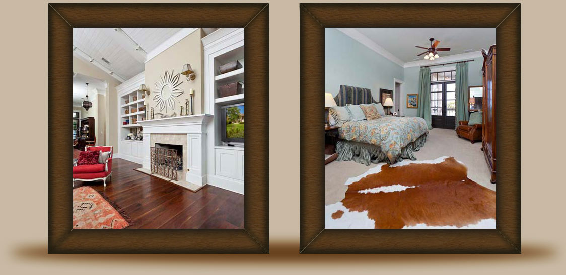 This waterfront home features stylish solid cypress columns, milled locally on the gulf coast. Constructed on wood pilings, the home’s appealing exterior facade is hard-coat stucco, applied over concrete board. Tongue-and-groove ceilings give the home a charming, old country feel while the modern commercial kitchen boasts custom-built cabinetry and marble countertops styled to please the most discriminating chef.